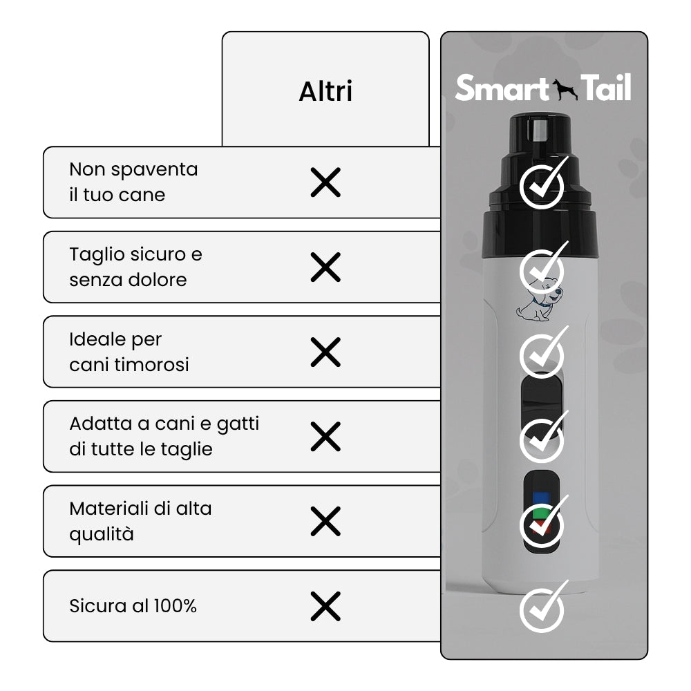 “Finalmente un taglia unghie sicuro e silenzioso! Il mio cane non si spaventa più durante la cura delle unghie.”